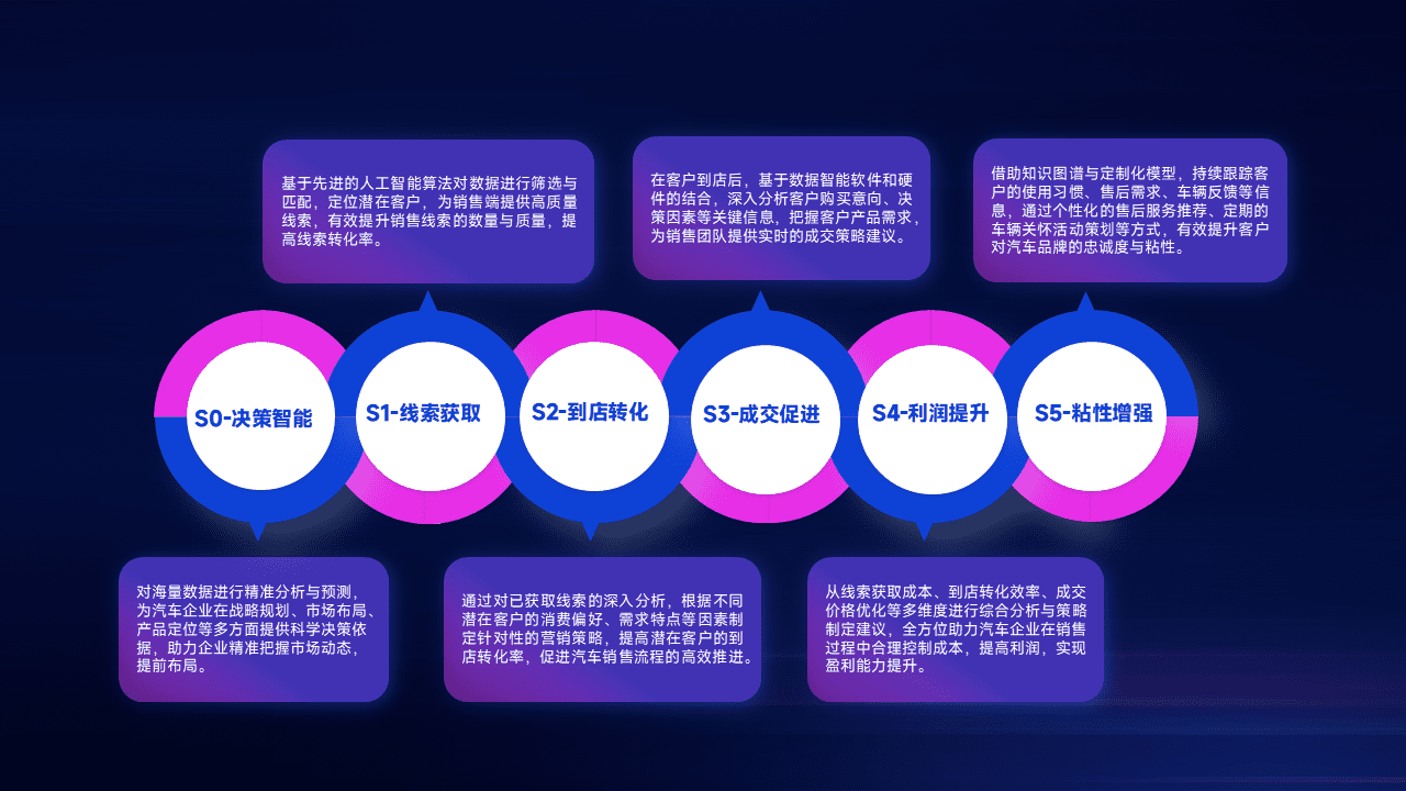 通过拓宽潜在客户来源、、、优化线索分配并提高到店转化率,,以增强销售效率。。同时,,,利用线索数据不断优化分析模型,,,,有效提升转化率,,扩大营销影响力。。